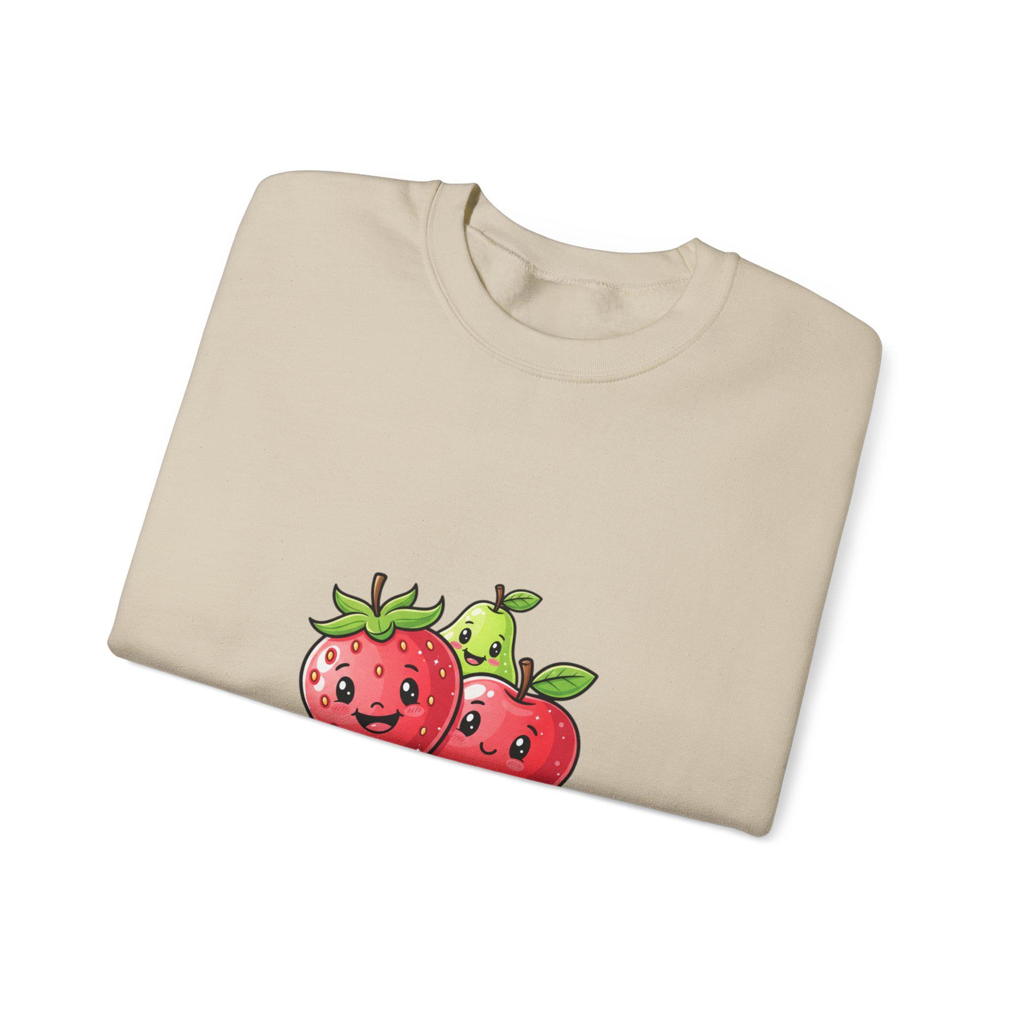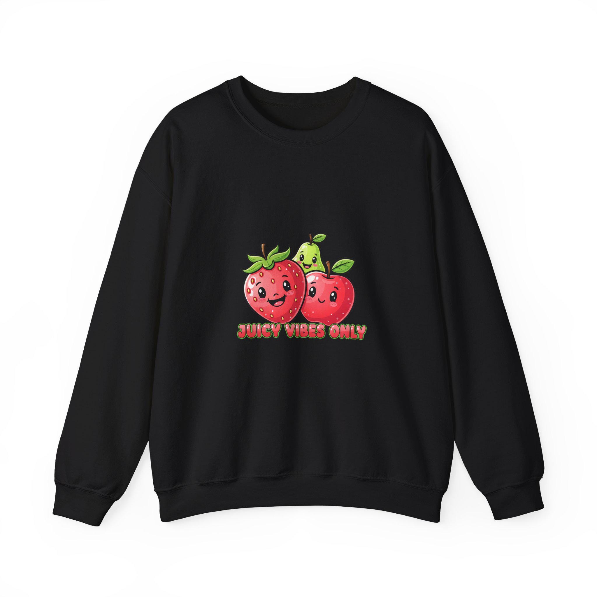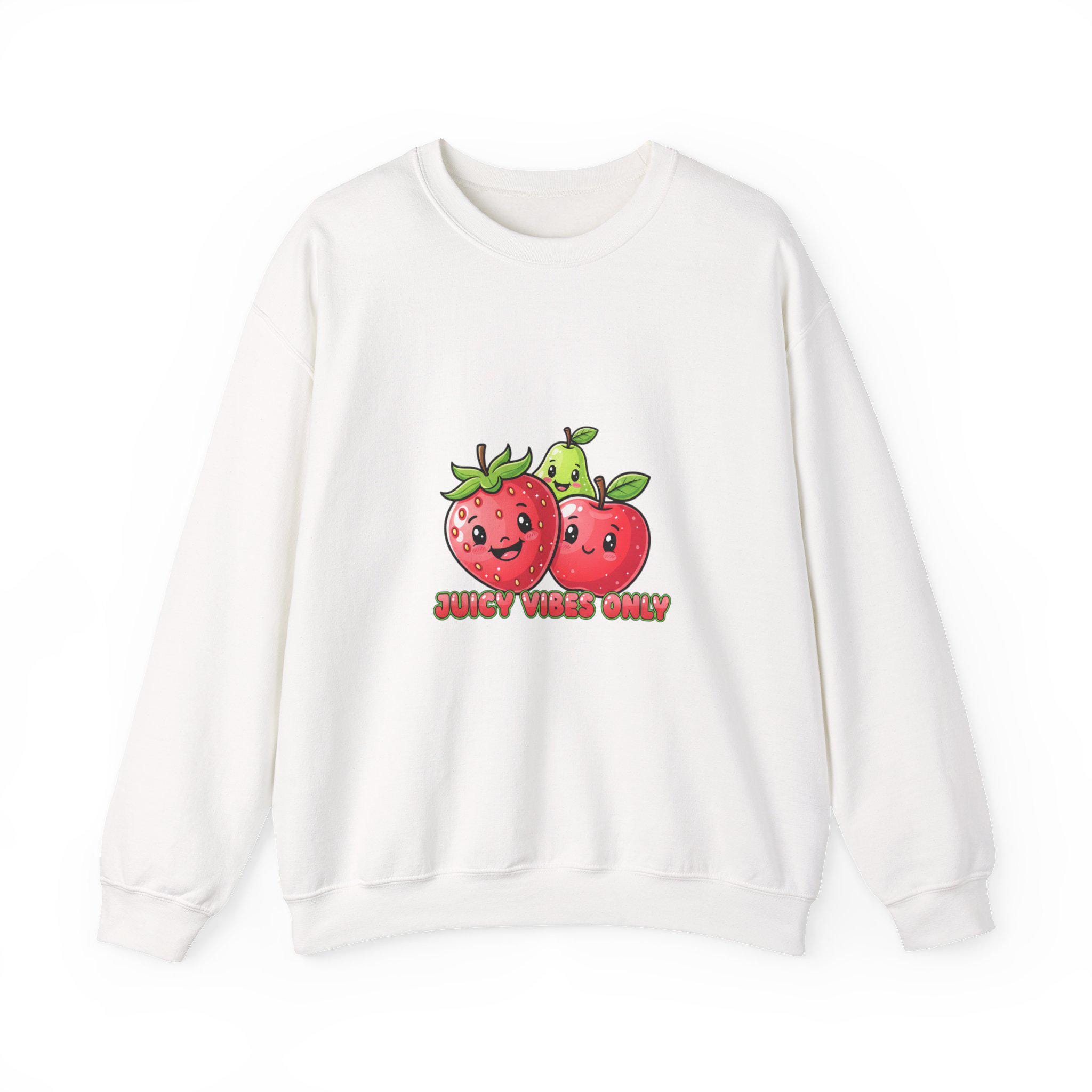 A playful Y2K-inspired crewneck that turns glossy, candy-like fruit art into wearable pop. The front features two 3D-style strawberries with shiny highlights and a cheeky low-slung phrase in bubbly lettering, matching Hyper-Gloss Fruit and candycore aesthetics. The saturated, reflective illustration reads as youthful and digital — a loud, sticker-ready motif that translates well to streetwear and trend-driven wardrobes.