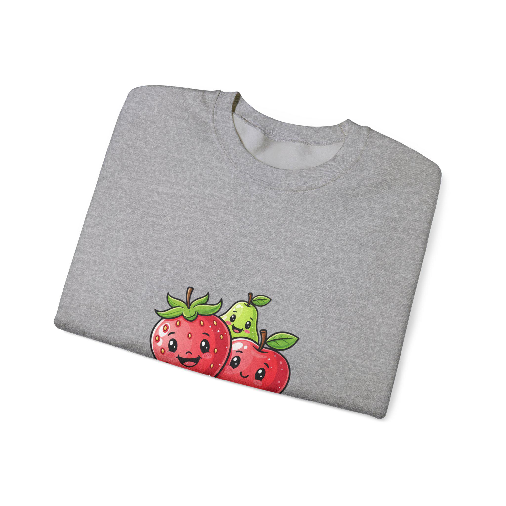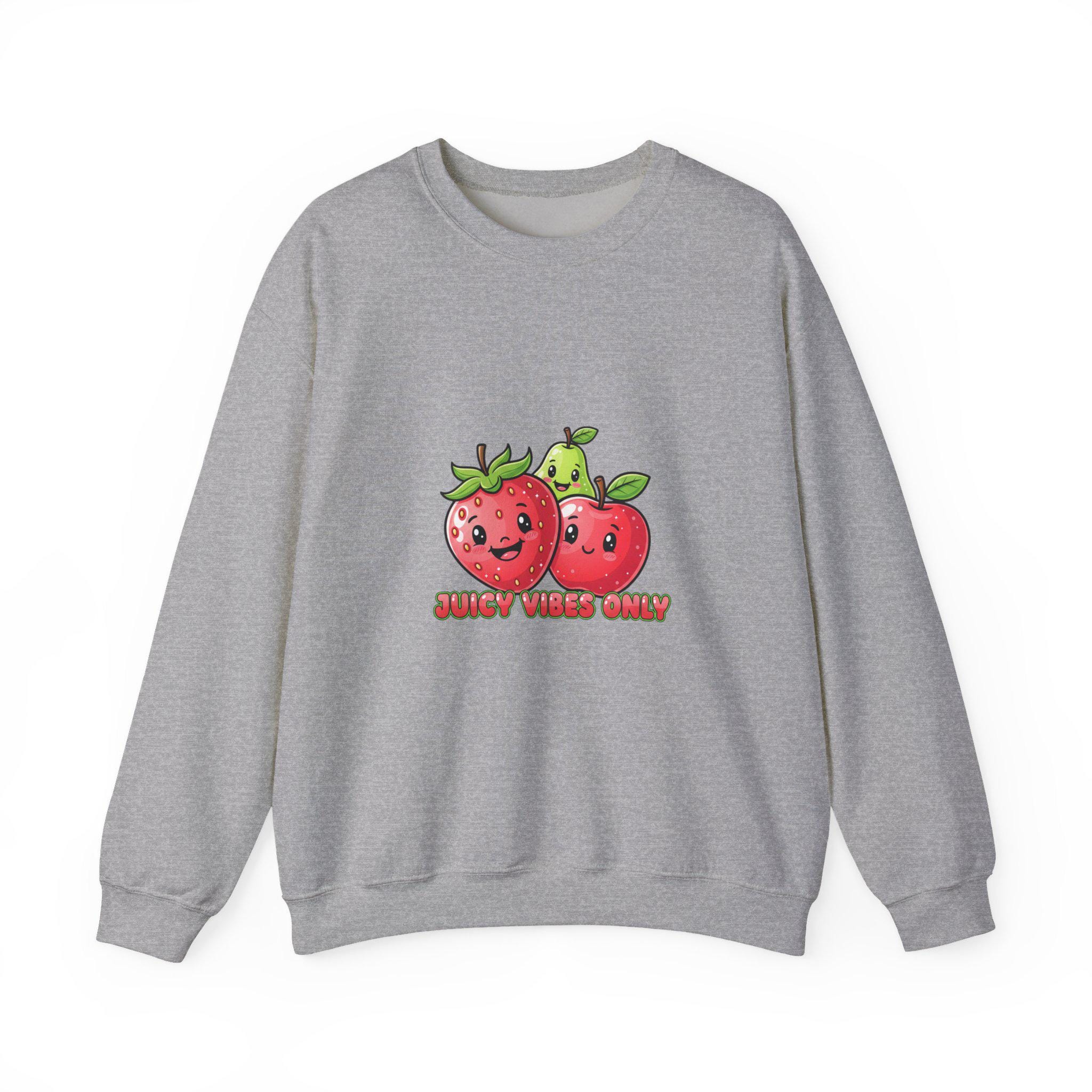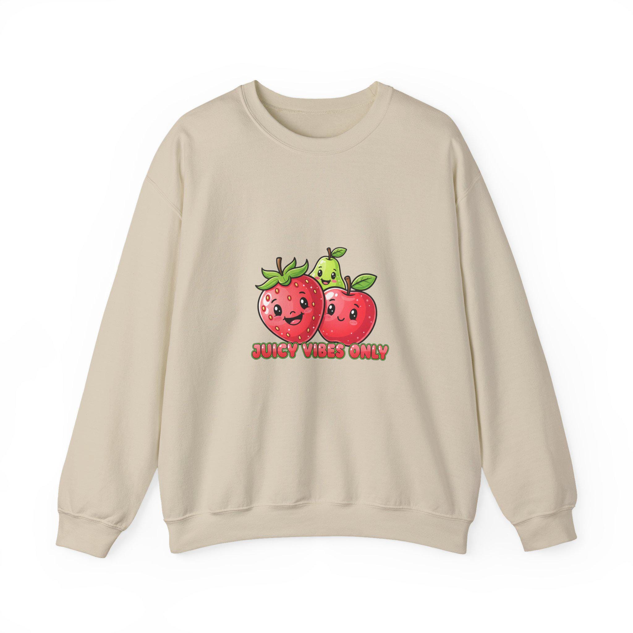 A playful Y2K-inspired crewneck that turns glossy, candy-like fruit art into wearable pop. The front features two 3D-style strawberries with shiny highlights and a cheeky low-slung phrase in bubbly lettering, matching Hyper-Gloss Fruit and candycore aesthetics. The saturated, reflective illustration reads as youthful and digital — a loud, sticker-ready motif that translates well to streetwear and trend-driven wardrobes.