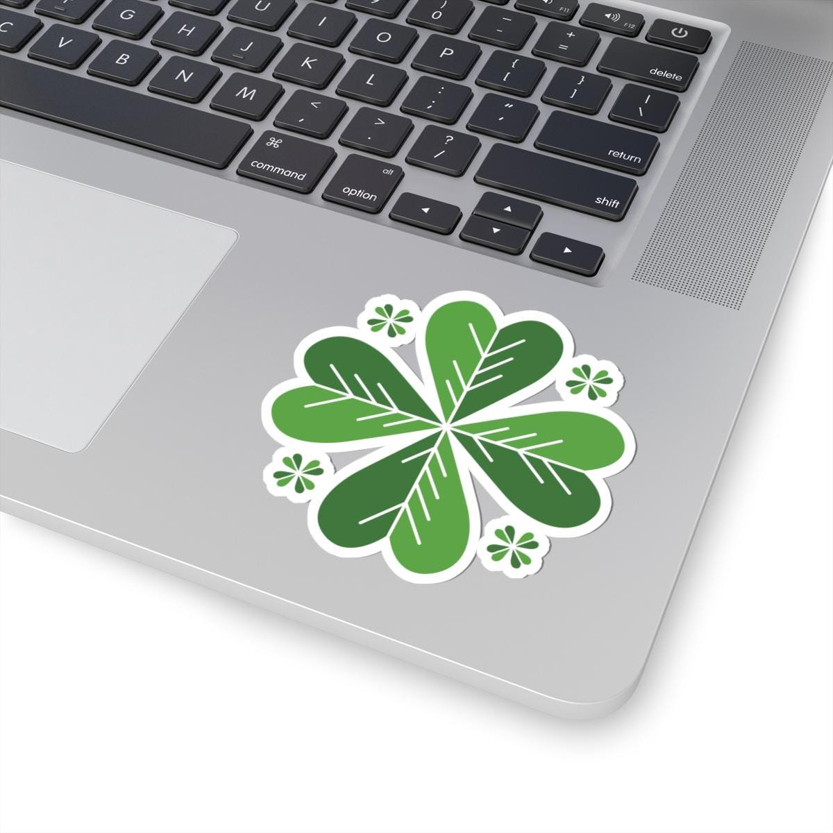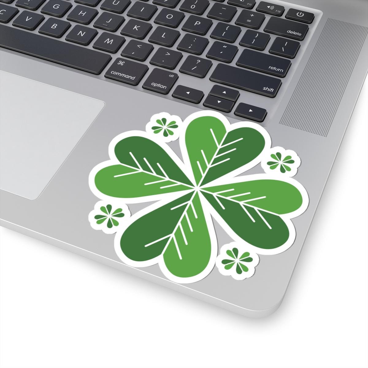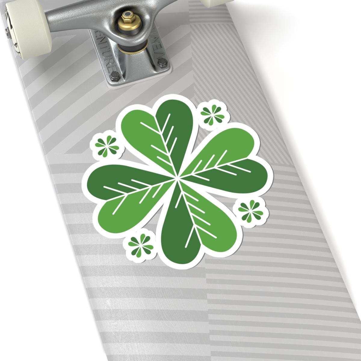 Bright, leafy clover stickers that bring a quiet bit of green to your everyday gear. Each kiss-cut vinyl decal features layered heart-shaped leaves in varying greens, crisply printed with eco-solvent inks for vivid, eye-catching color. The glossy finish catches light and stays smooth against laptops, journals, water bottles (indoor use), or windows. Lightweight and simple to apply, they slip on bubble-free and hold with strong permanent adhesive so your little patch of nature stays put. Choose white or transparent backing and from several sizes to match your layout — these stickers are made to add a playful, botanical accent to the things you use every day.